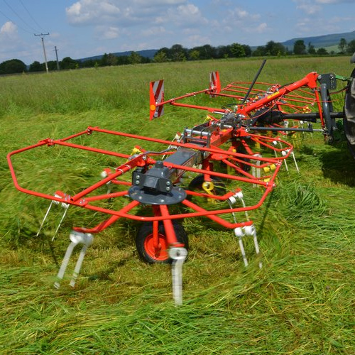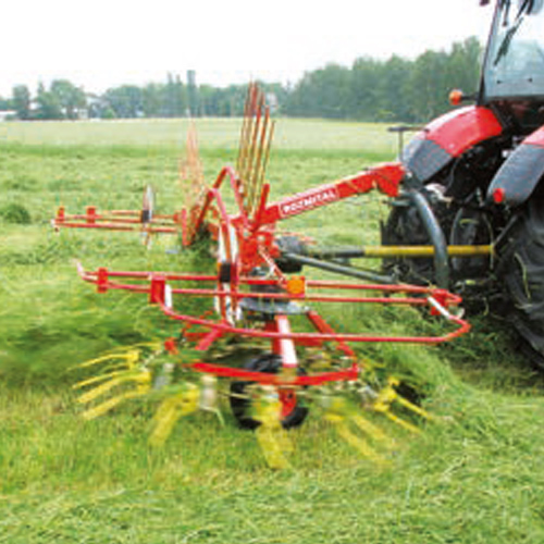 Single-rotor or twin-rotor rakes with center or side swath delivery are available in various configurations, either mounted or trailed. Working widths range from 3.6 m to 13.4 m.